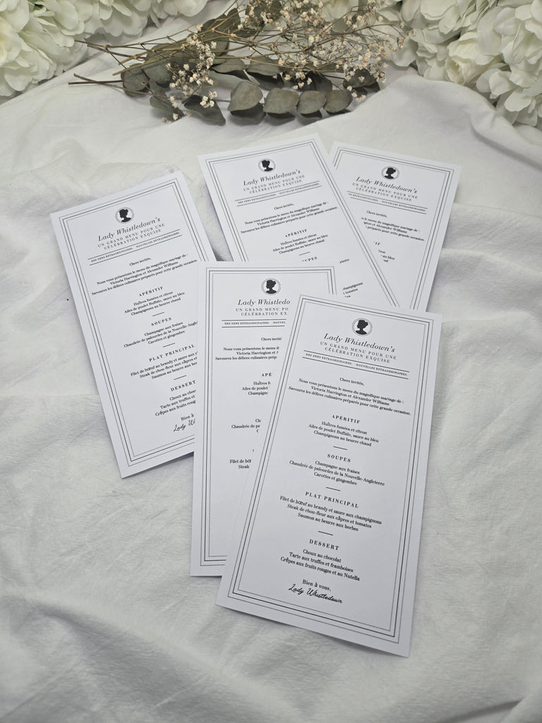 MENU REPAS MARIAGE, LADY WHISTLEDOWN'S THÈME ÉVÉNEMENTS