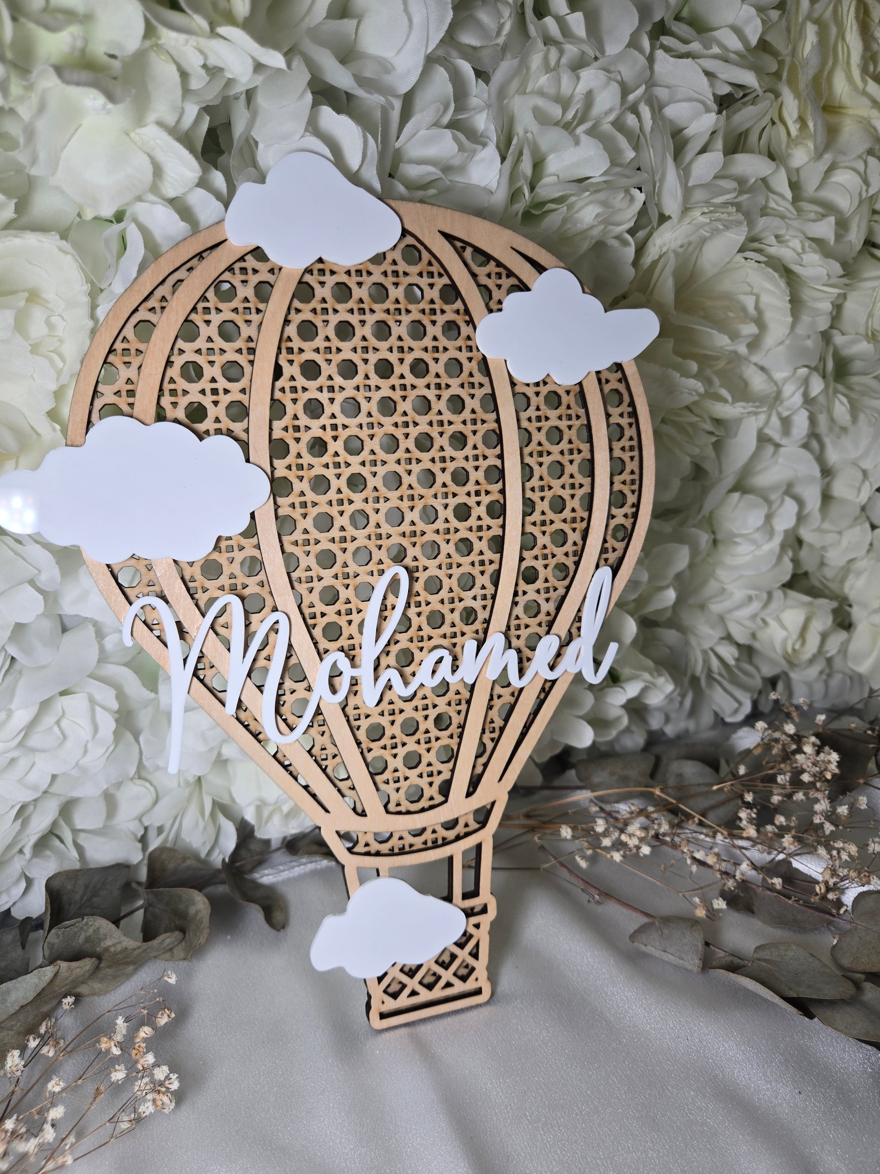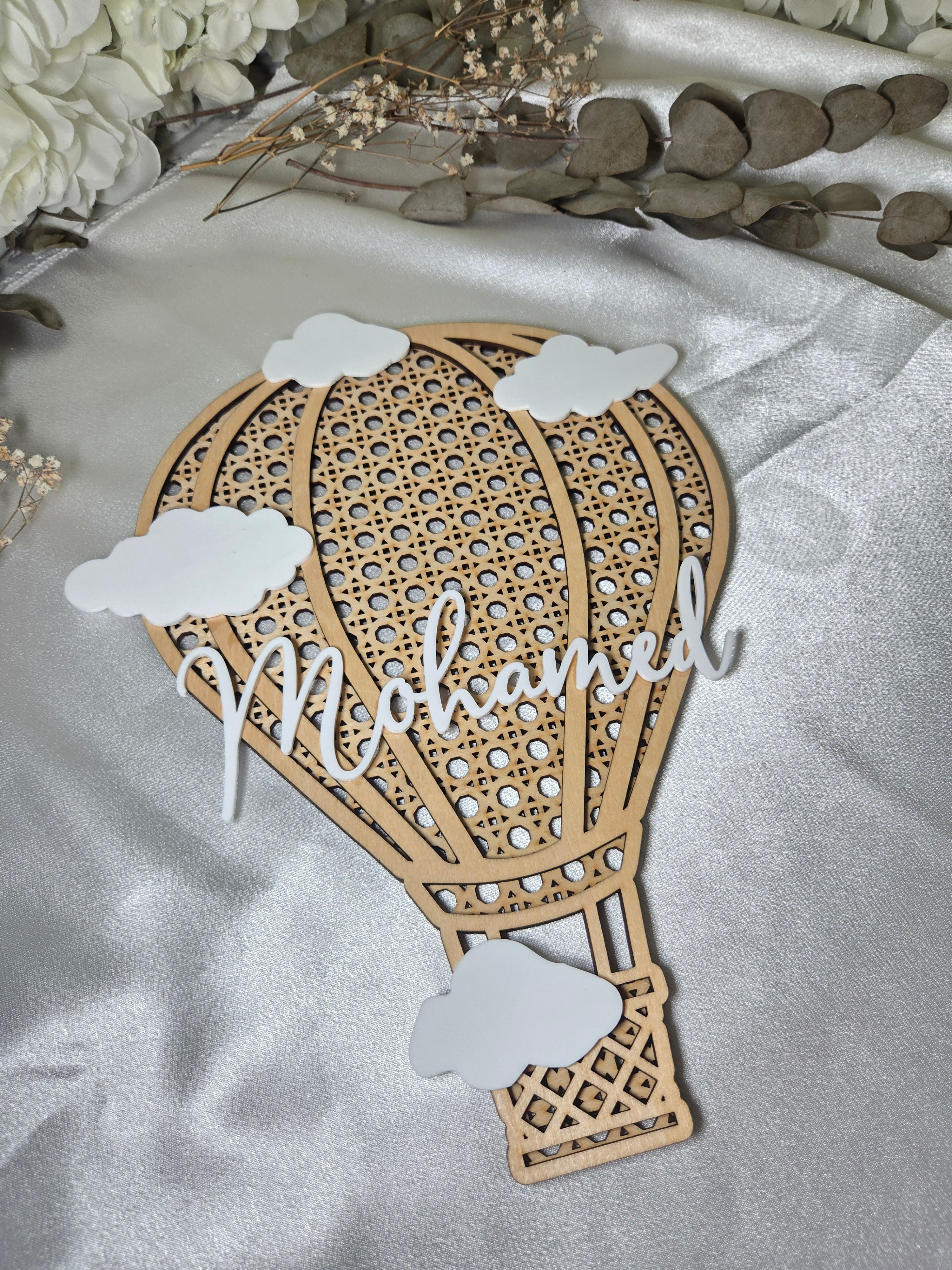 Montgolfière Personnalisée Naissance – Bois & Plexiglass