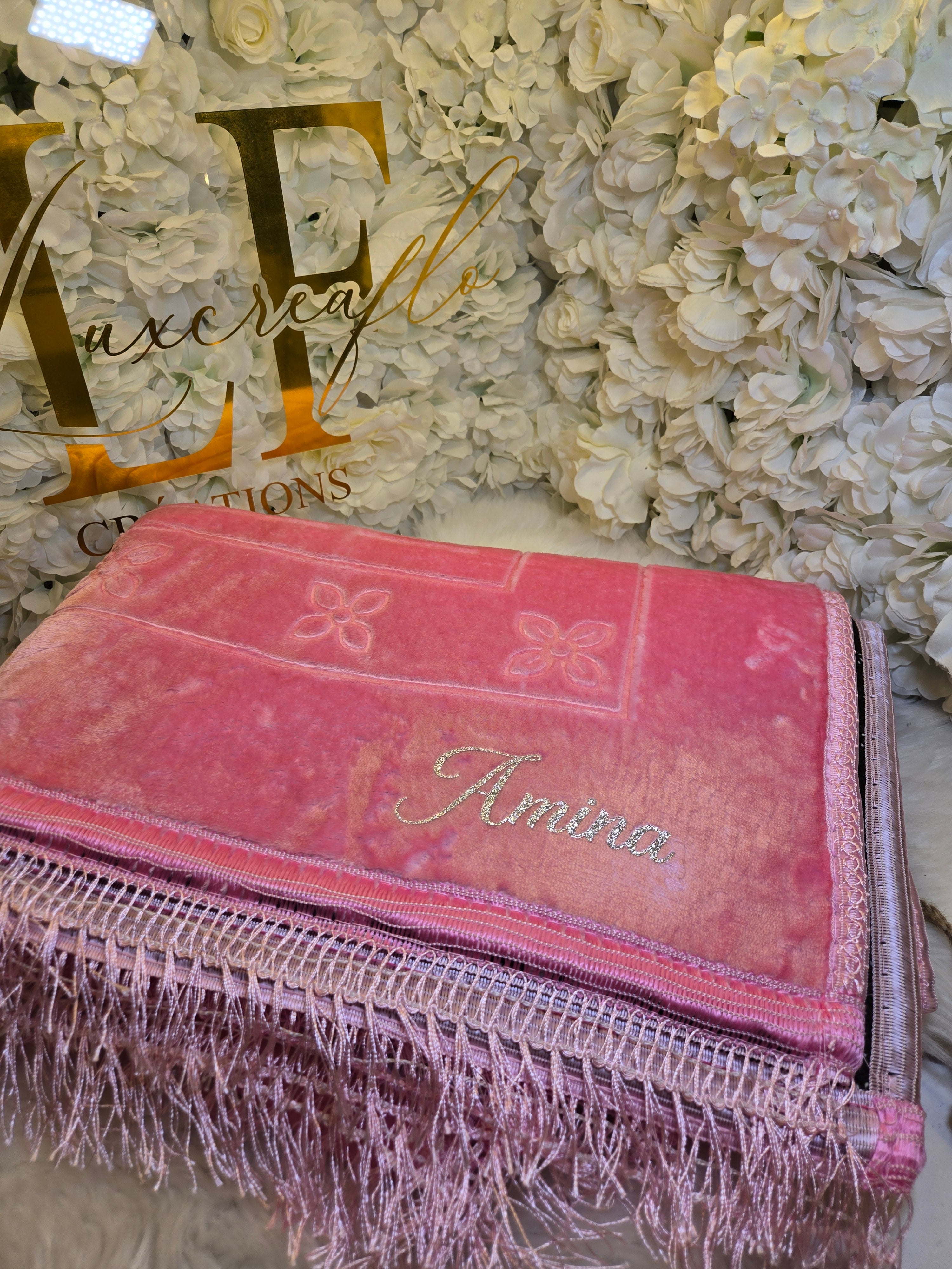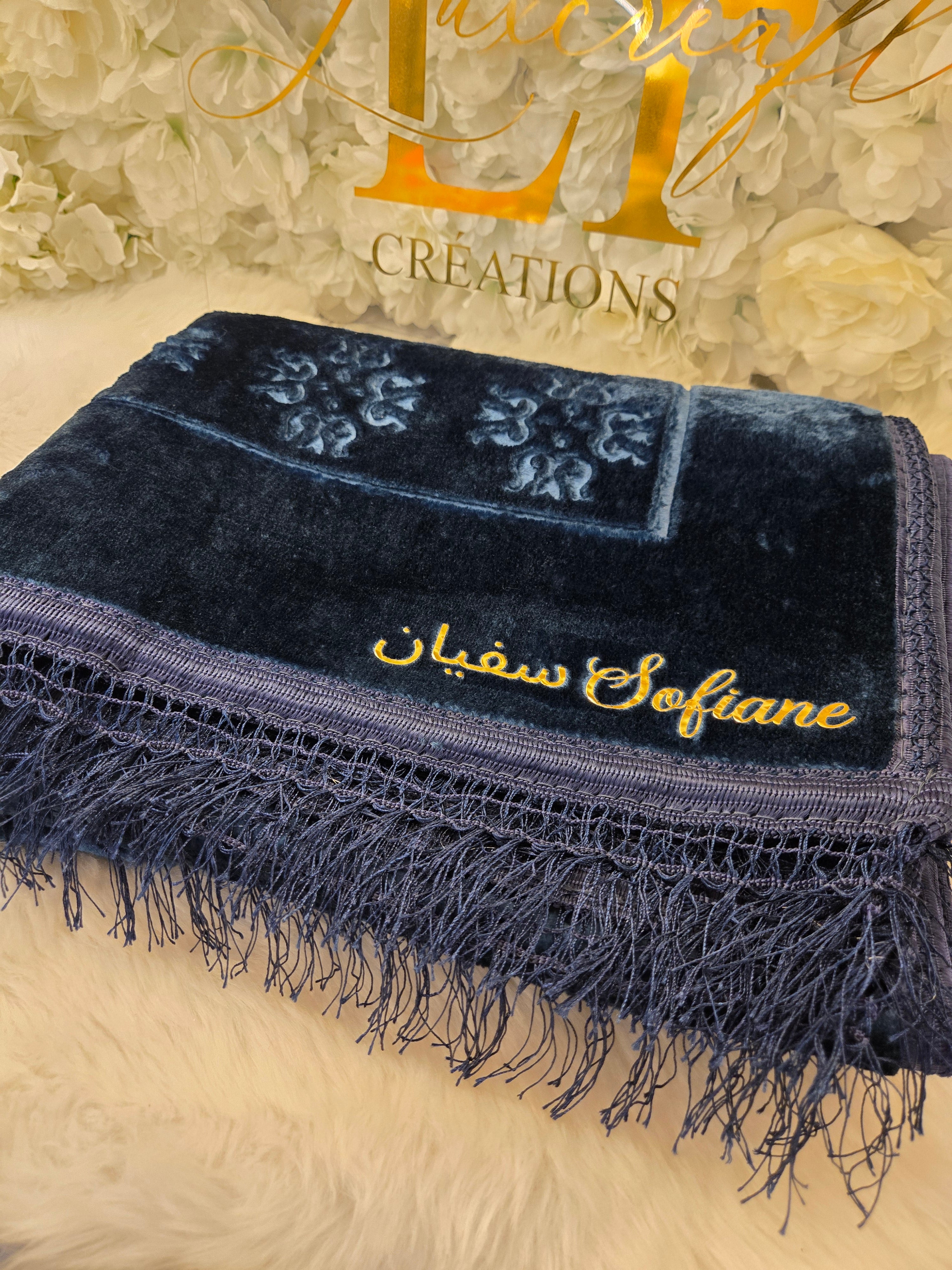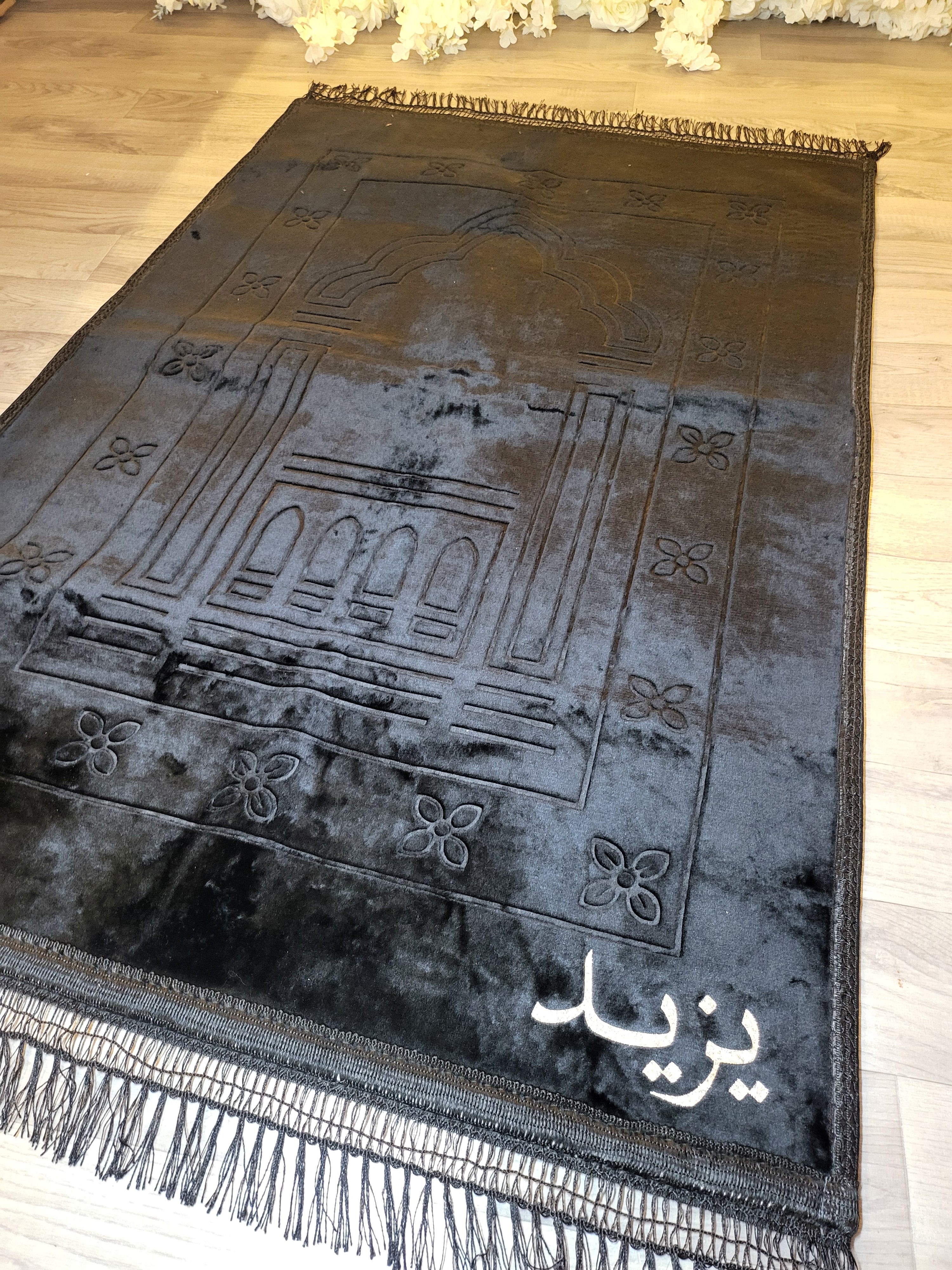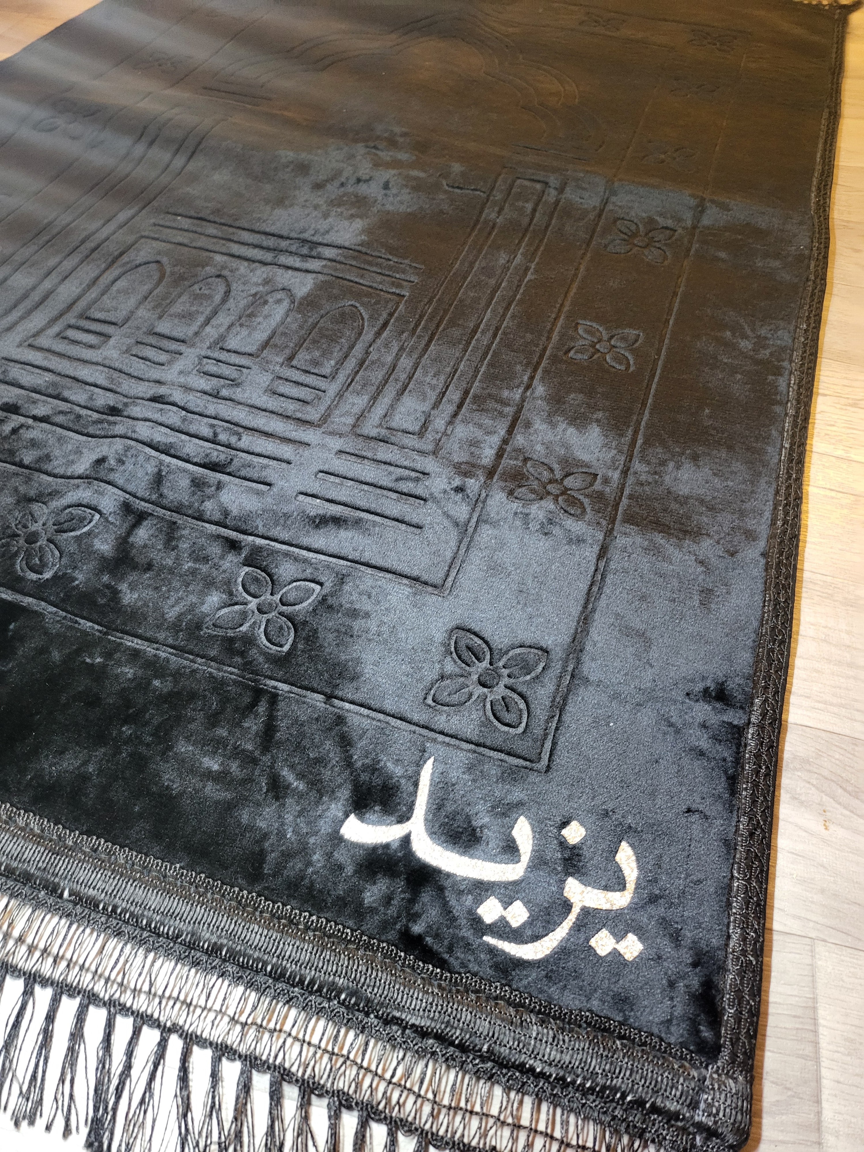 Tapis de prière en velours rembourré et très épais personnalisé, idéal comme cadeau pour la Saint Valentin, cadeau de mariage, cadeau de l'Aïd, cadeau du Ramadan, cadeau d'anniversaires etc...
